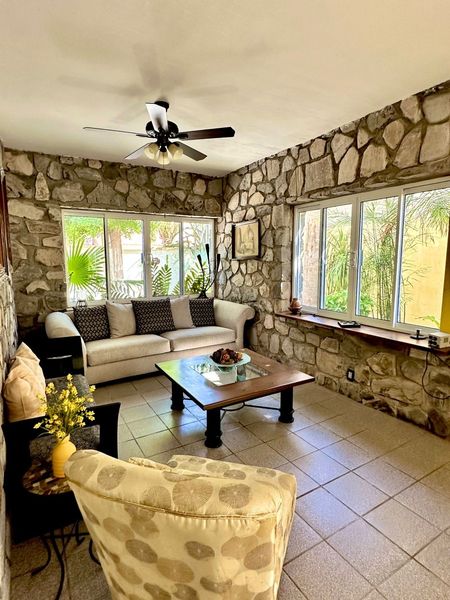 Casa Campestre Residencial en Renta… Espaciosa y bella casa, rodeada de jardines, totalmente bardeada, cerca de Hospitales, plaza Galerías, Sam’s Club, Aeropuerto, Escuelas públicas y privadas (St. John’s, Hospital Fidepaz, etc.) totalmente amueblada y equipada. Si gustas de espacios amplios, de jardines y lugares exteriores a disfrutar, esta será la casa ideal. 4 recámaras, 2.5 baños, estudio, cocina equipada, ante comedor, sala-comedor. Cuarto de lavandería y cochera para 2 autos. No mascotas.