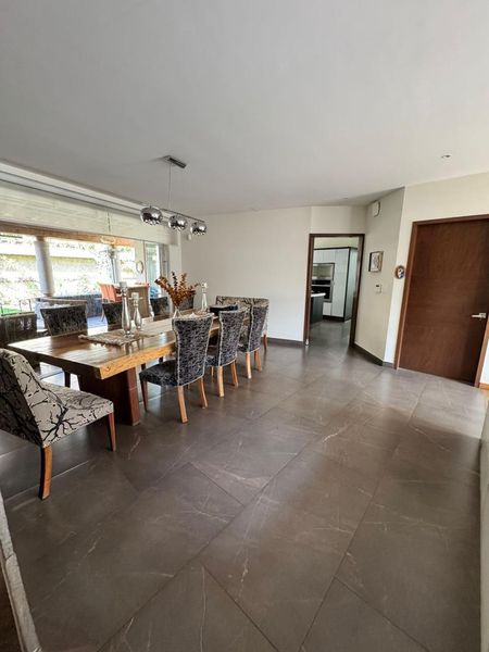 Casa ubicada en privada de 5 casas con seguridad 24 hrs. Ideal para familias, ambiente relajado y tranquilo. Esta casa de diseño moderno ofrece comodidad y practicidad en todas sus áreas. Recamara principal en planta baja con vestidor y baño muy amplios. 3 recamaras en planta alta con vestidor y baño completo. En planta baja ofrece diferentes salas de estar, cuarto de TV, sala-comedor con acceso a terraza y jardín, cocina con excelentes acabados y área de desayunador. Cuenta con una cochera hasta para 4 coches, cuarto y baño de servicio, closet de blancos, cuarto de lavado y patio de tenido.