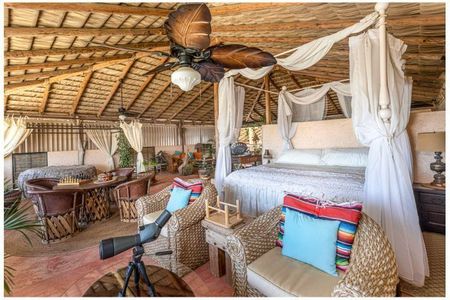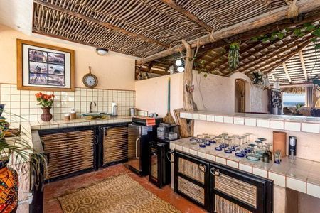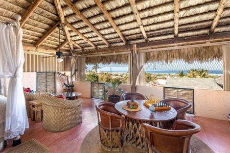 Welcome to Casa Tomas! This unique beautifully landscaped 2 lot fully furnished home with separate living areas ideal for a big family, rentals, or as an investment to build a big home on the second lot. The lower level of the home is a full 3-bedroom, 2-bath home with a nice kitchen, dining, and living room. The separate second level accessible from external stairs is a beautiful open concept living area combo with full bath, kitchen/bar area and front patio boasting gorgeous views of the Sea of Cortez and the Four Seasons resort. The lovely yard area has a small kitchen area that is covered, a storage bodega, covered parking. Included is a beautiful 1 bedroom self sufficient ocean view trailer artfully garaged with bamboo. The walled lot next door has a big garage, boat/truck included!
