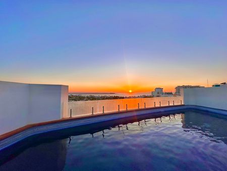 Disfruta lo mejor de la vida al aire libre con acceso a una terraza compartida en la azotea que cuenta con alberca, jacuzzi, área de asador y amplios espacios para sentarse—ideal para relajarse o convivir mientras se contemplan vistas panorámicas de la ciudad y el Mar de Cortés.