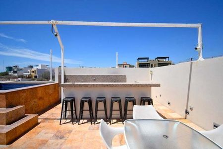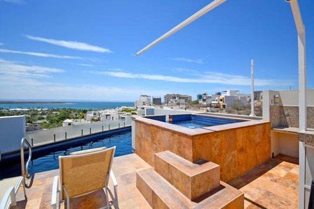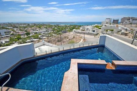 Acceso exclusivo a una terraza en la azotea que cuenta con una piscina  y tina de hidromasaje, área de parrilla, ofreciendo vistas panorámicas del Mar de Cortés y el horizonte de La Paz, perfecto para entretenerse o relajarse al aire libre. Cuenta con estacionamiento cerrado y seguro en la planta baja y bodega con espacio de almacenamiento privado; excelente para equipo de playa, bicicletas o artículos de temporada. Entorno y potencial de Inversión ubicado en uno de los barrios de más rápido crecimiento de La Paz, con valores de propiedad en aumento, lo que lo hace ideal para uso personal o alquileres a corto plazo.