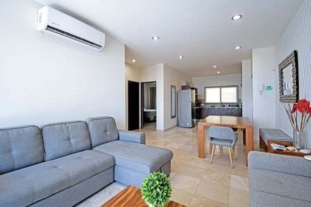 El condominio está completamente amueblado y listo para mudarse, con una decoración contemporánea de buen gusto y un diseño pensado tanto para la comodidad de vivir como para la flexibilidad de alquiler. Con 2 habitaciones y 2 baños completos, abarca aproximadamente 96 m² en un solo nivel dentro de un edificio de baja altura de solo ocho unidades.