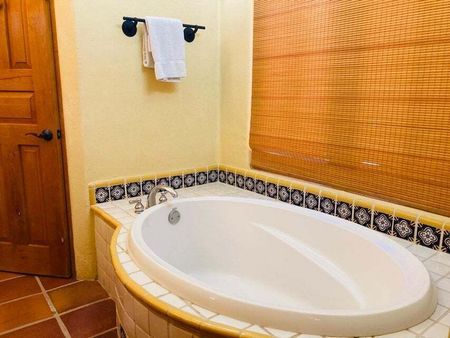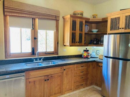 En la planta baja encontrarás una acogedora área de sala y cocina de concepto abierto. La cocina está equipada con cubiertas de granito, lavavajillas y refrigerador nuevos, además de un piso de terrazo recién instalado. También en este nivel hay una recámara principal con baño en suite, doble lavabo, una recámara adicional para invitados y un baño completo. La sala y la recámara principal cuentan con pantalla plana. También hay una tina de hidromasaje extragrande. El jardín interior, recientemente rediseñado con vegetación madura, es simplemente encantador.