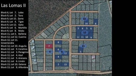 Instrucciones: Entra a La Ribera y dirígete hacia el camino que corre paralelo a la playa, la cerca de Costa Palmas. Conduce hacia el sur, pasando la gasolinera, y el camino se convierte en un camino de tierra mantenido. Toma la siguiente IZQUIERDA y dirígete hacia Playa Colorada. Las Lomas II está unos minutos más adelante a tu derecha.