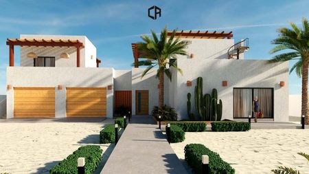 La compra incluye planos personalizados de la casa, diseñados para aprovechar las espectaculares vistas panorámicas de 240° al mar, desierto y montañas, además de impresionantes cielos nocturnos ideales para contemplar las estrellas.